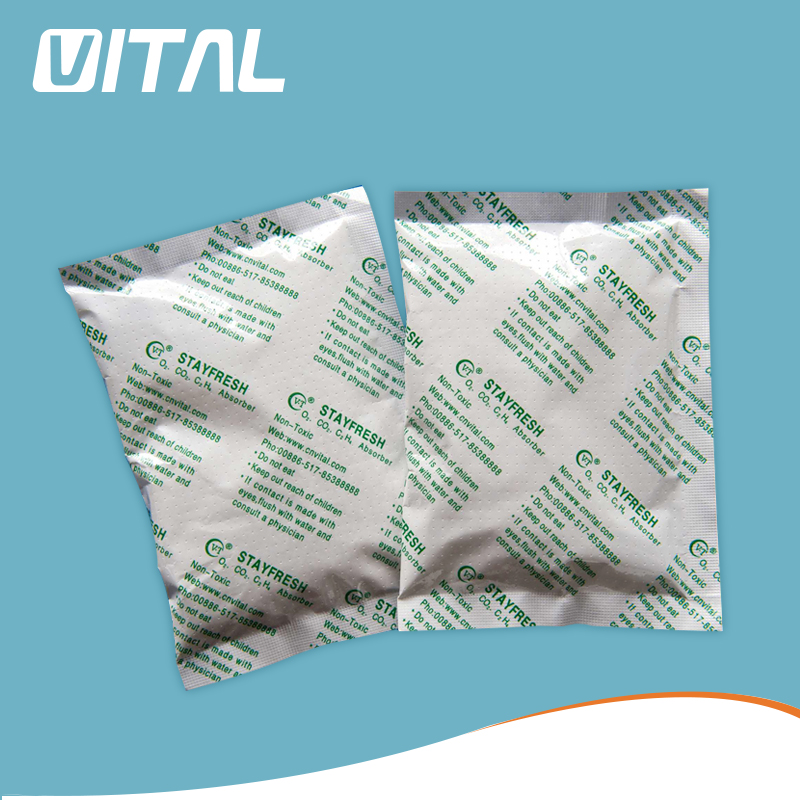 VITAL果蔬保鮮劑是根據各種果蔬經不同加工、處理后所需的貯運條件,專門配制的氣調型果蔬保鮮劑的總稱。其主要功能是調節產品內的氧氣、二氧化碳濃度,降低果蔬生理活性,清除乙烯、乙醇、甲醛、乙醛等有害的代謝產物,防止品質惡化,抑菌、防霉減少微生物污染,調節溫度,吸收包裝內產生的明水和各類有害氣體,使果蔬在最適的貯藏環境中完成貯運、銷售過程。